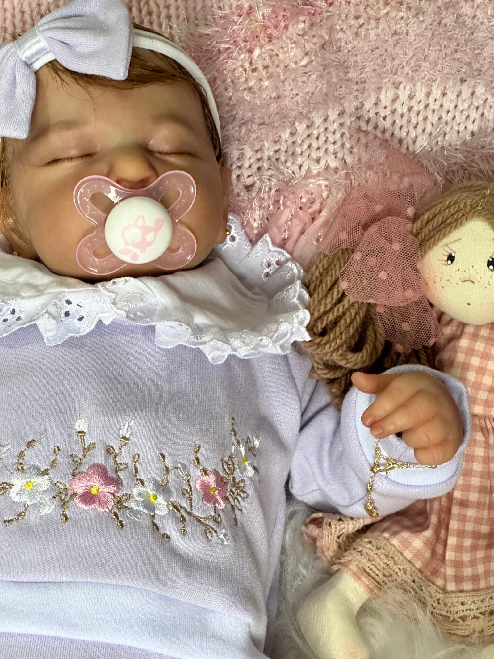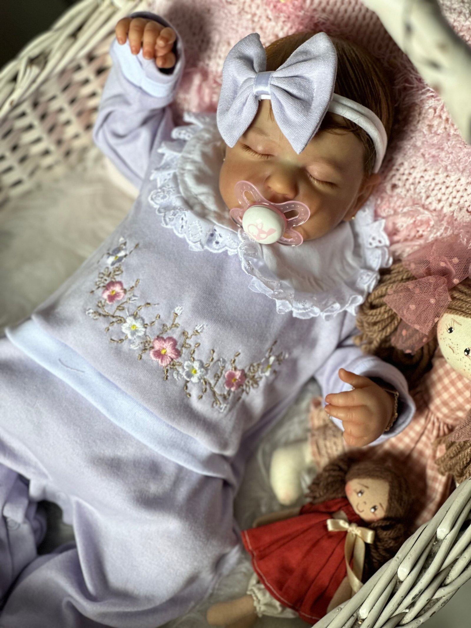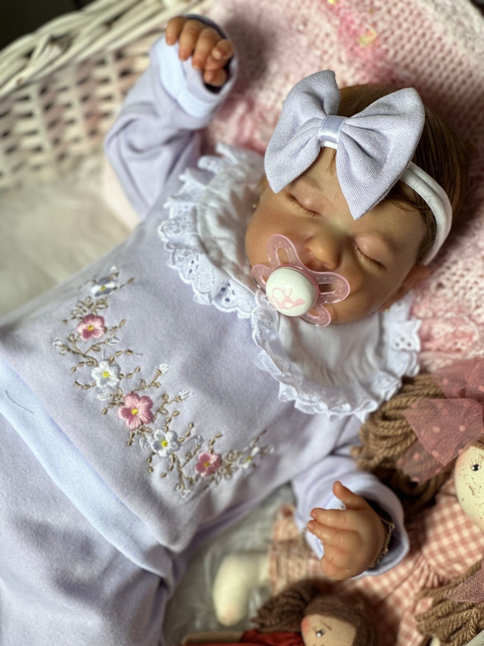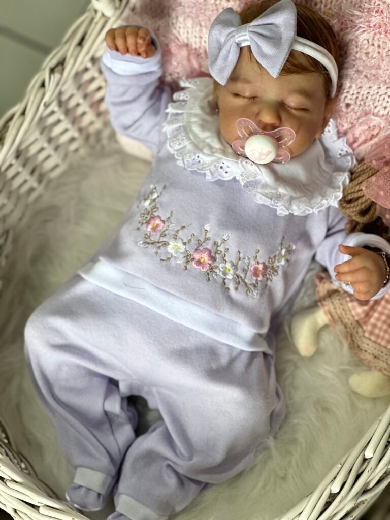Pintada a mão com tinta importada e cabelinho enraizado fio por fio com fibra beautex e olhos fechados.