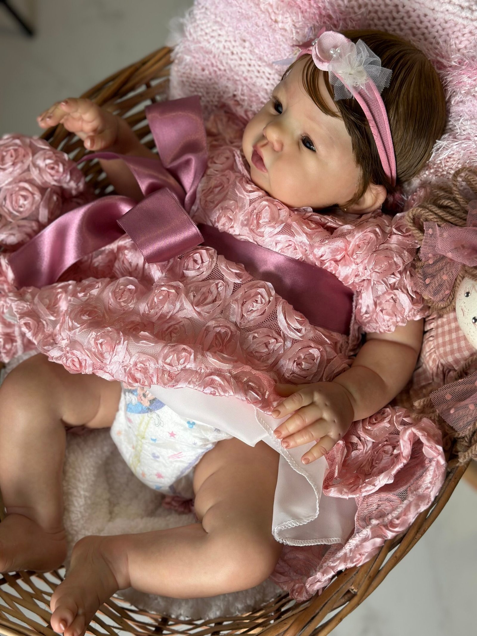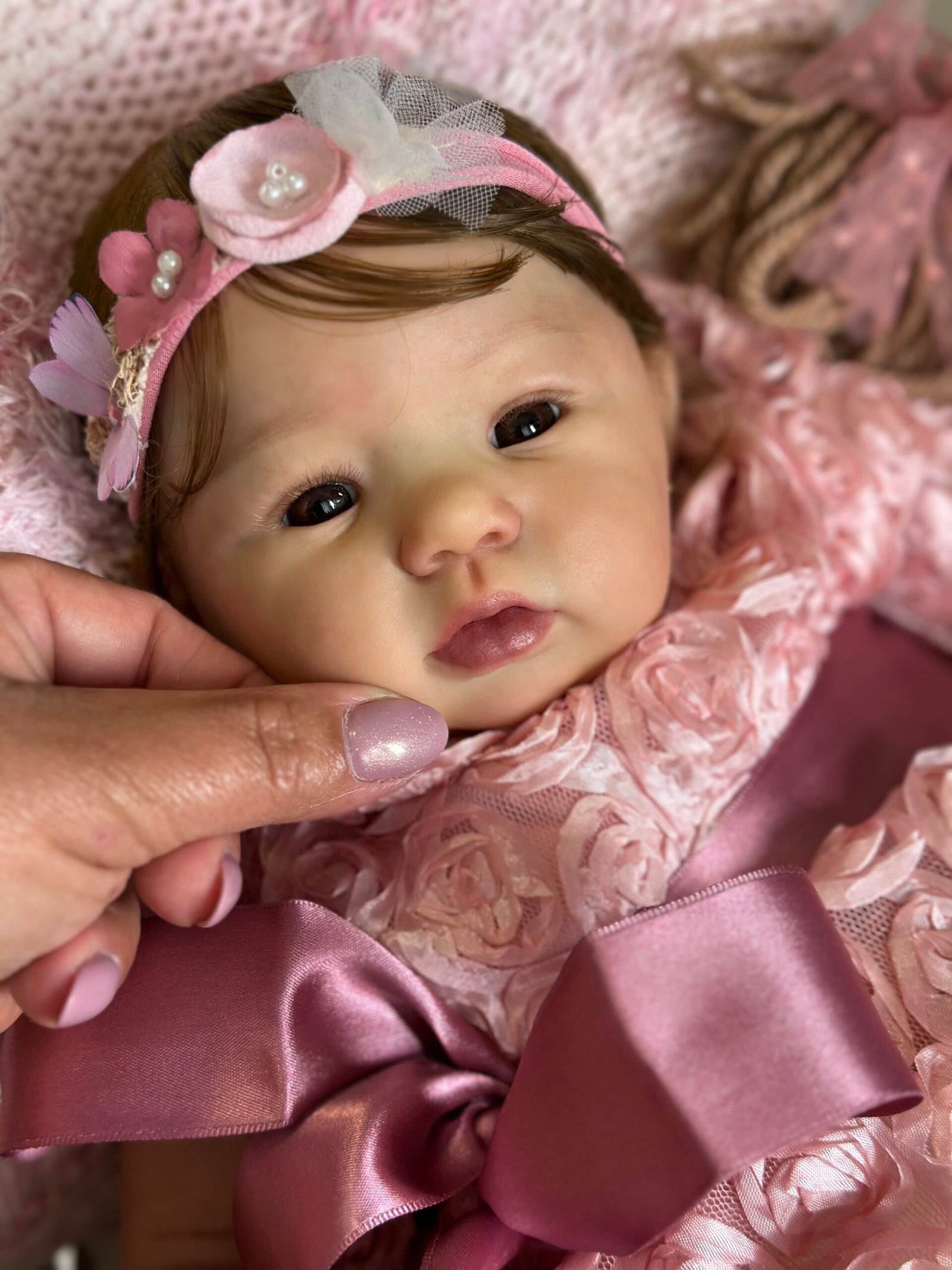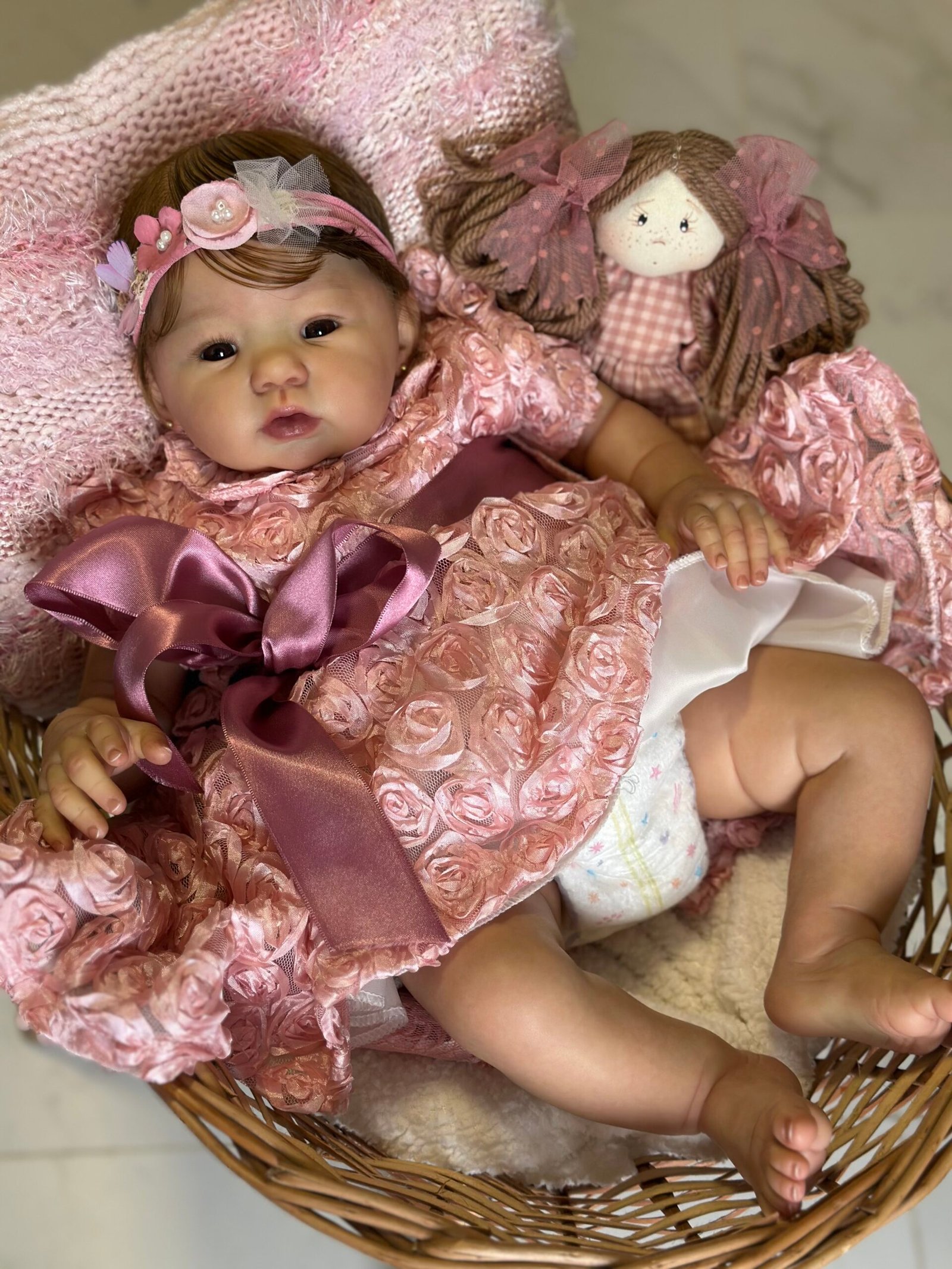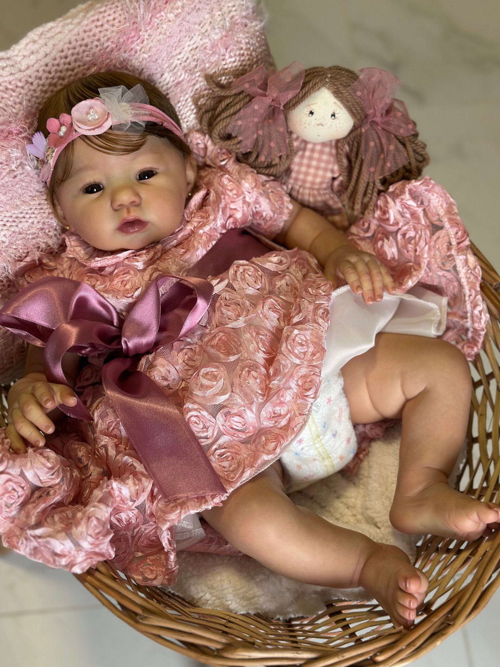 Pintada a mão com tinta importada e cabelinho enraizado fio por fio com fibra beautex e olhinhos castanho realista.