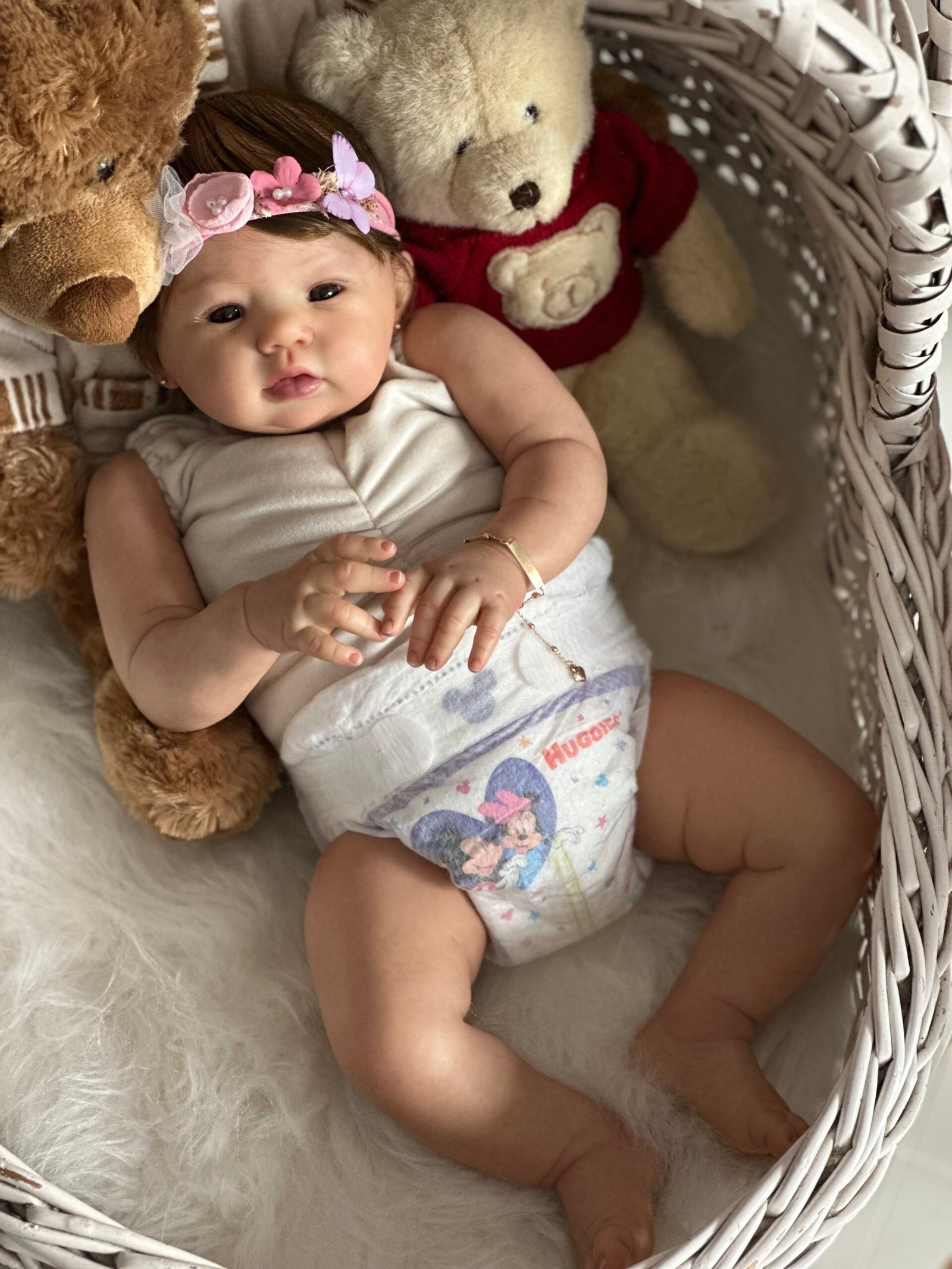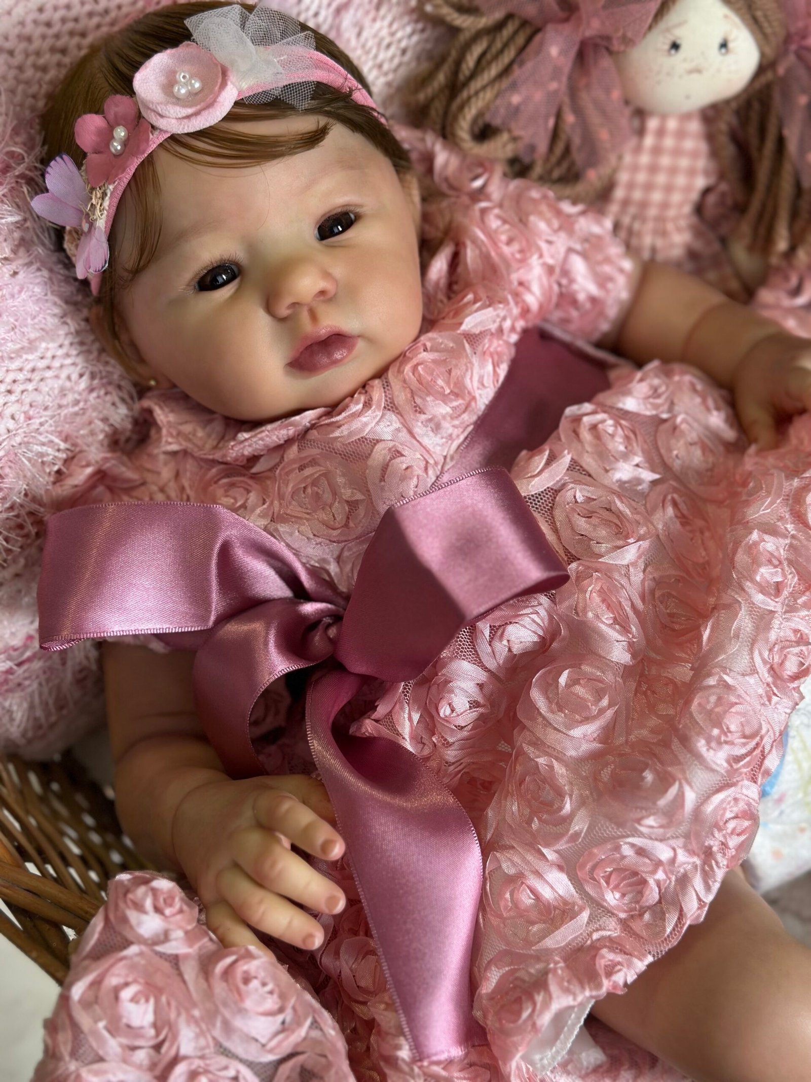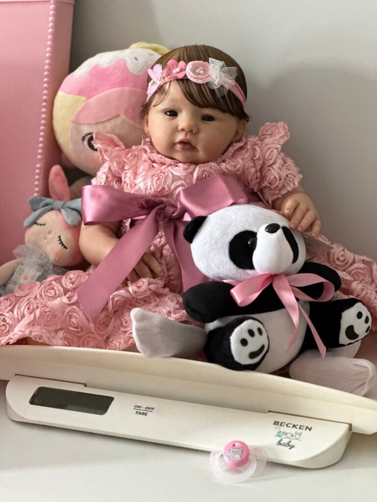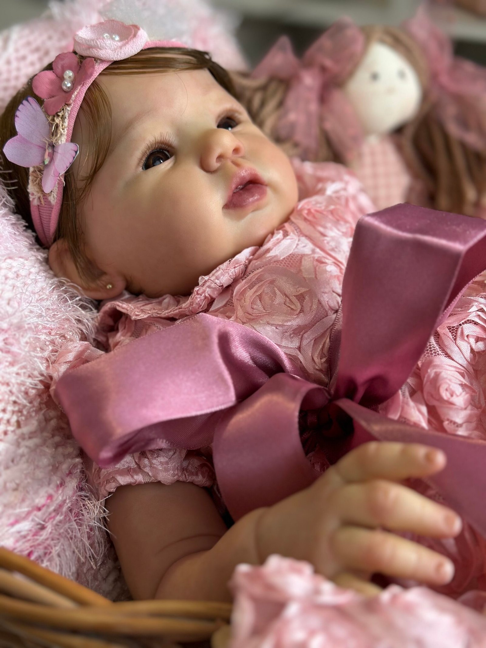 Pintada a mão com tinta importada e cabelinho enraizado fio por fio com fibra beautex e olhinhos castanho realista.