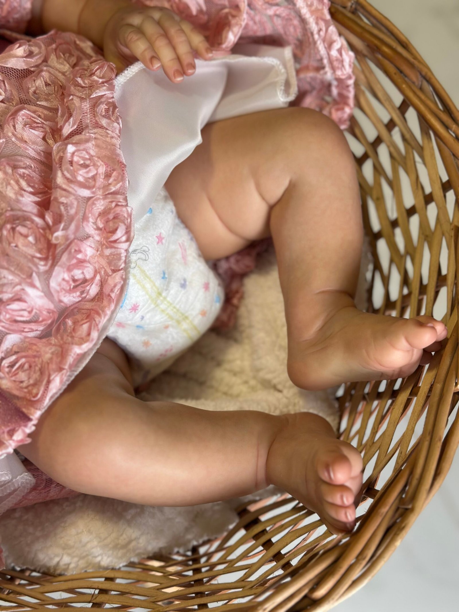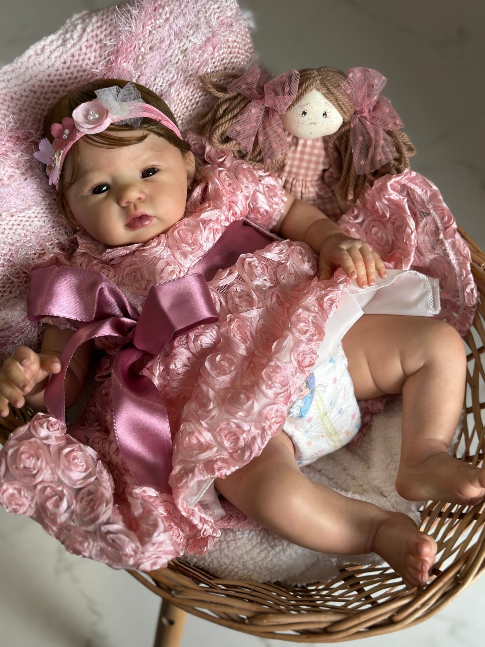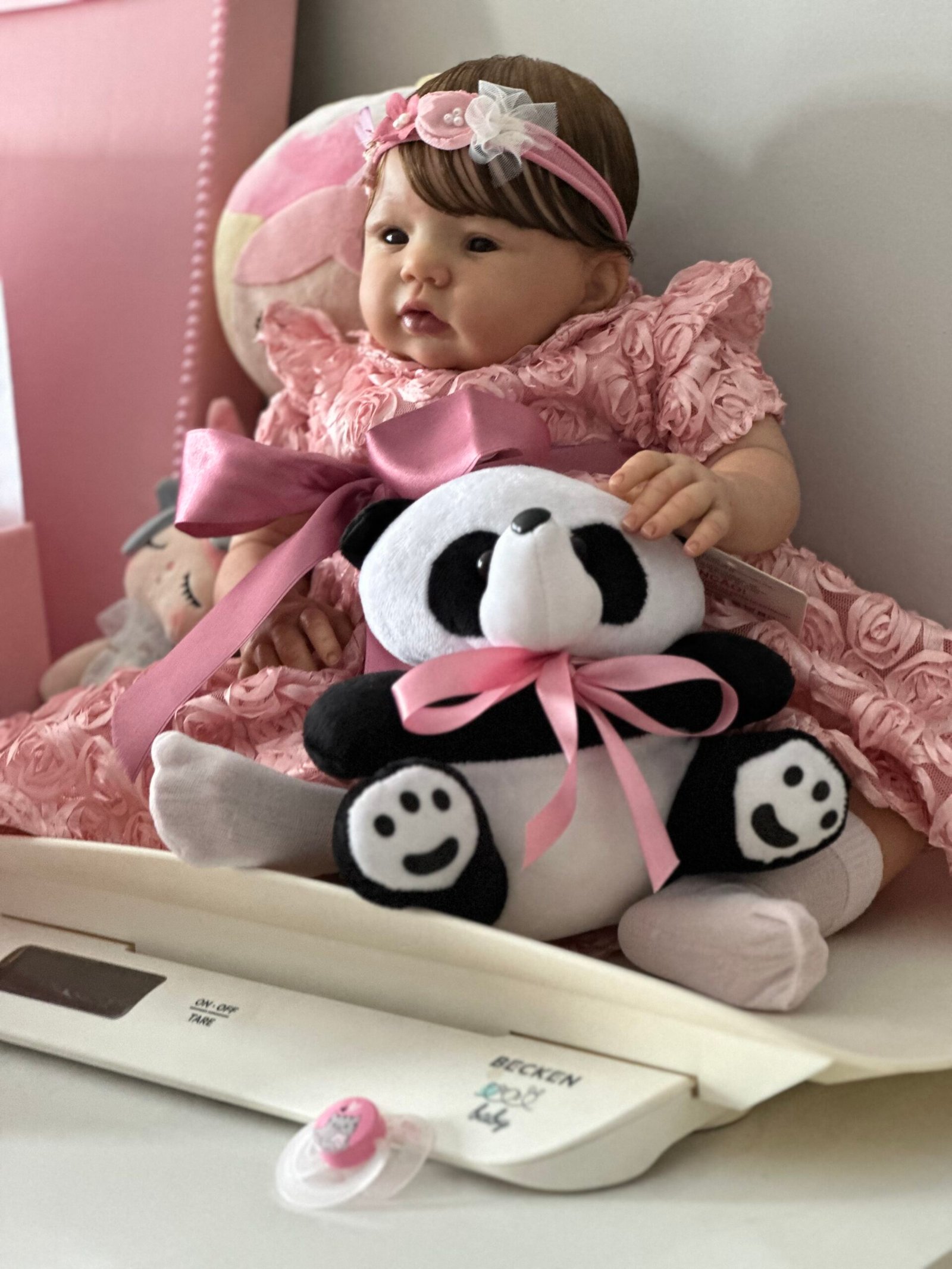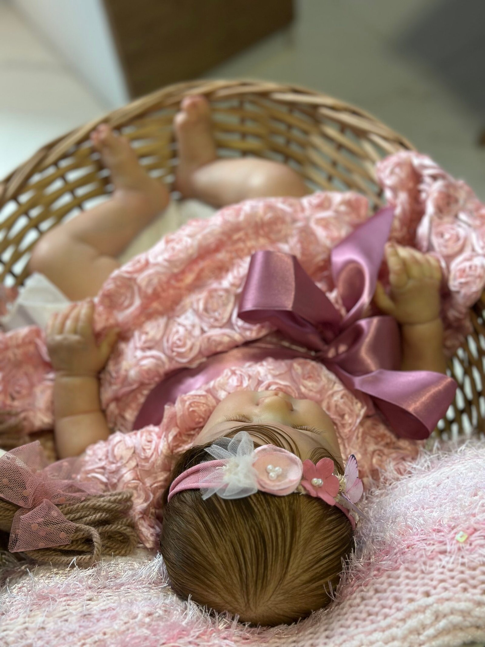Pintada a mão com tinta importada e cabelinho enraizado fio por fio com fibra beautex e olhinhos castanho realista.