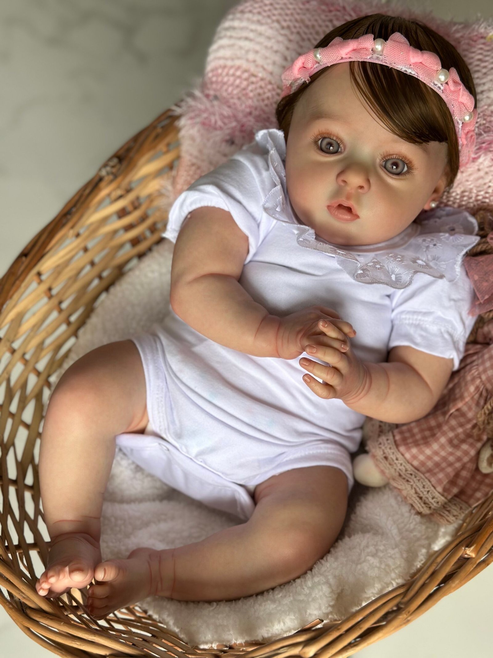 Linda Bebê Reborn com corpinho de tecido e braços 3/4.