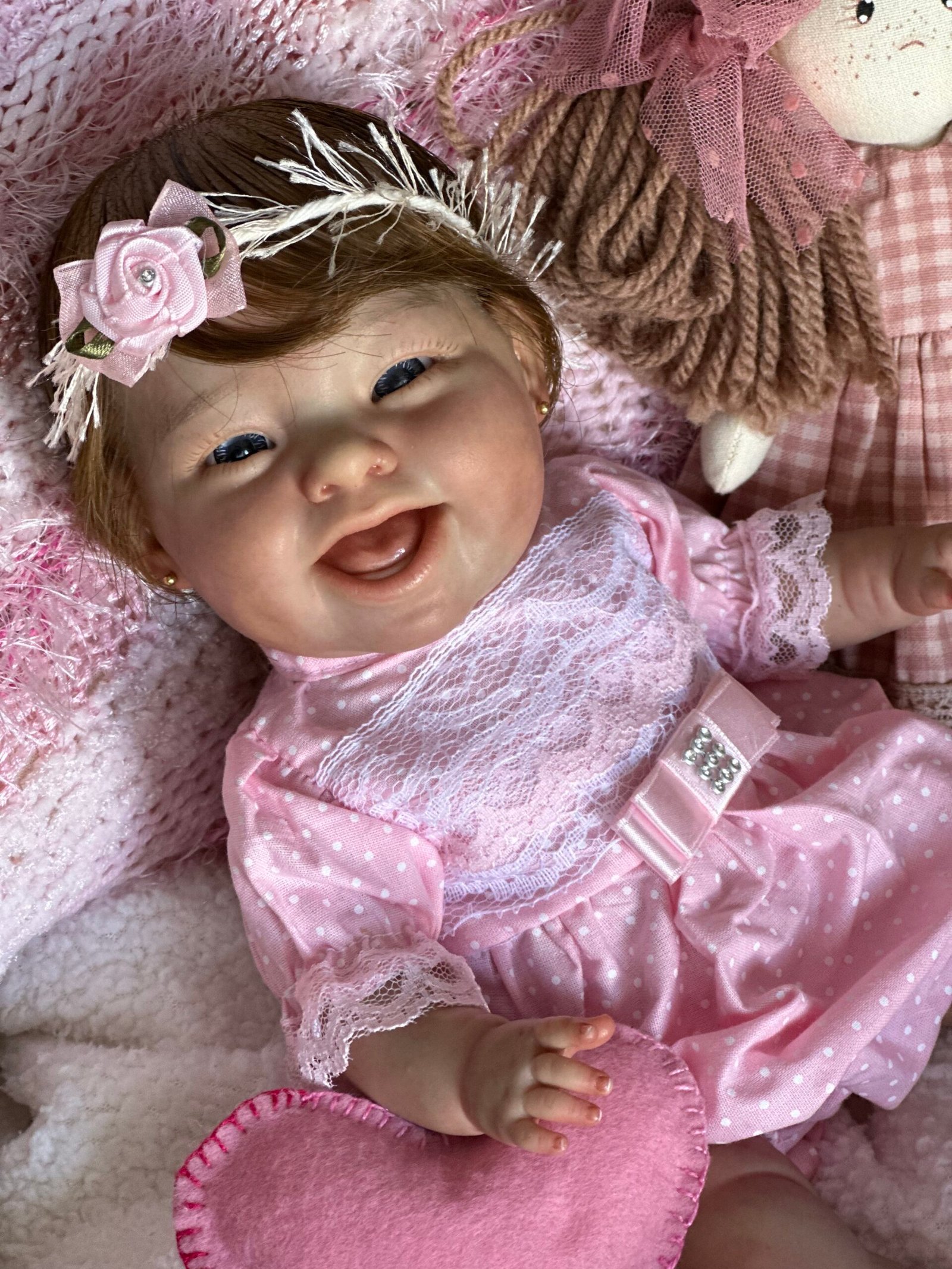 Boneca Reborn de corpinho inteiro em VINIL. Cabelos implantados fio por fio com fibra beautex.