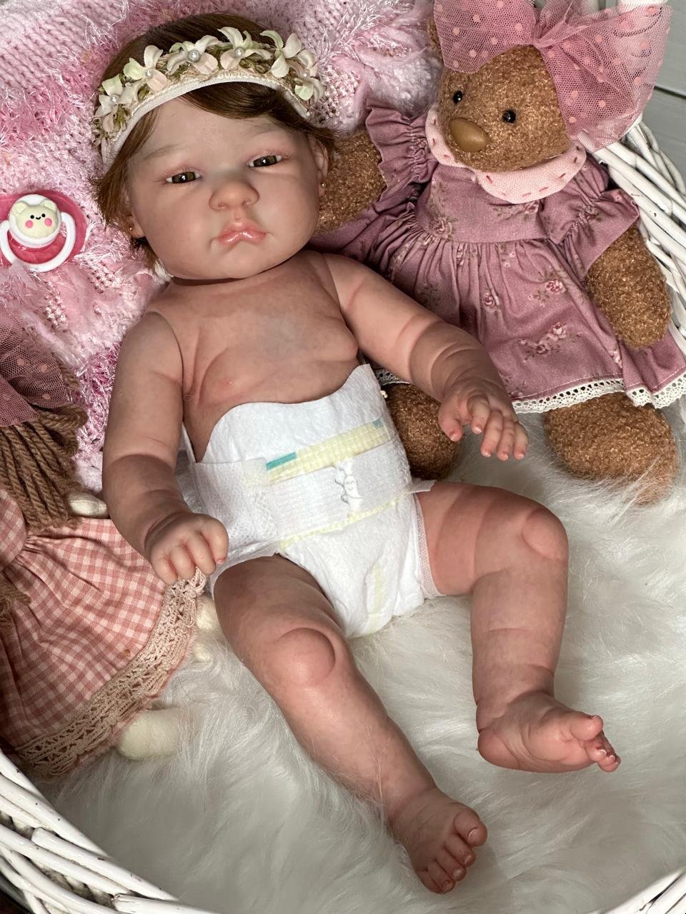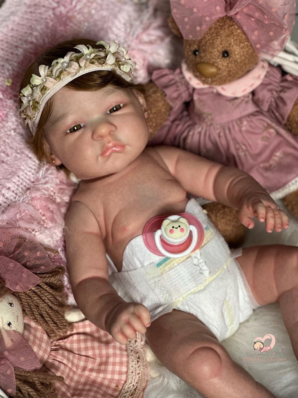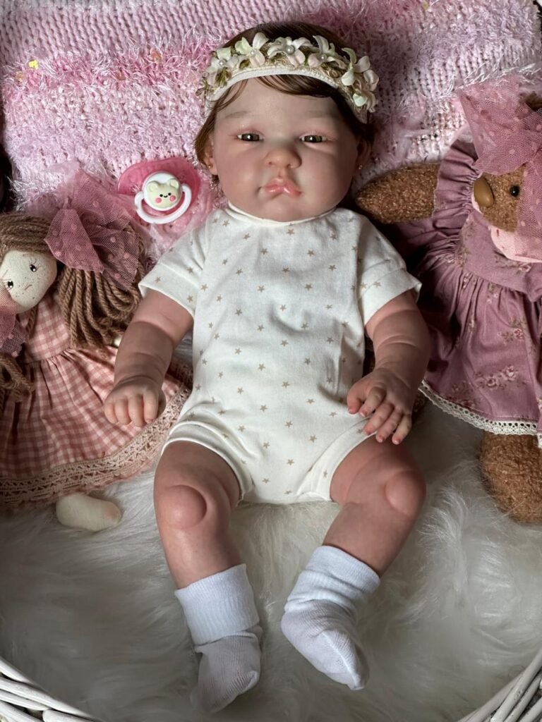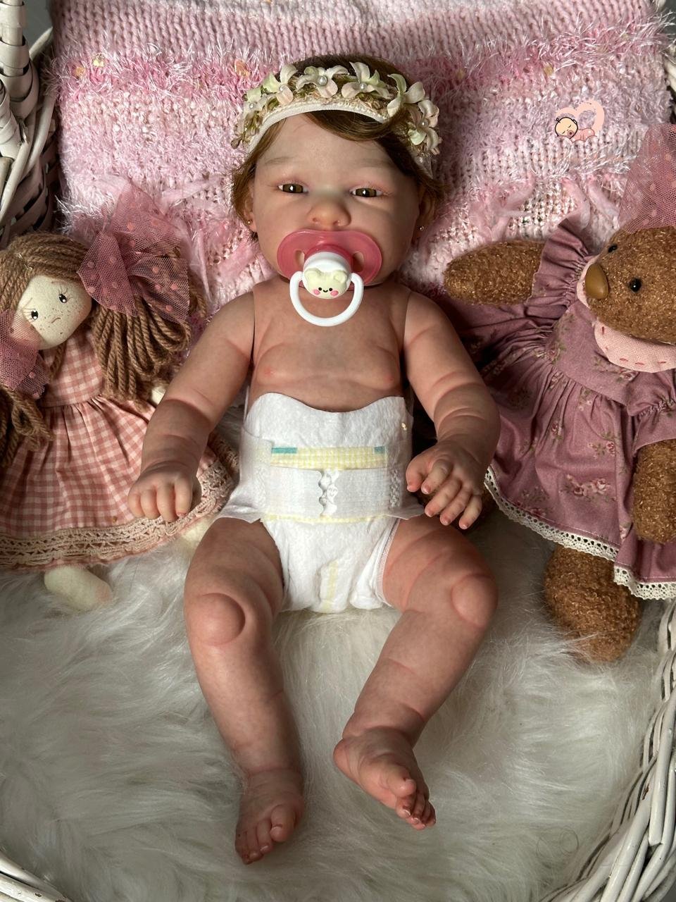 Boneca Reborn de corpinho inteiro em VINIL. Cabelos implantados fio por fio com fibra beautex.