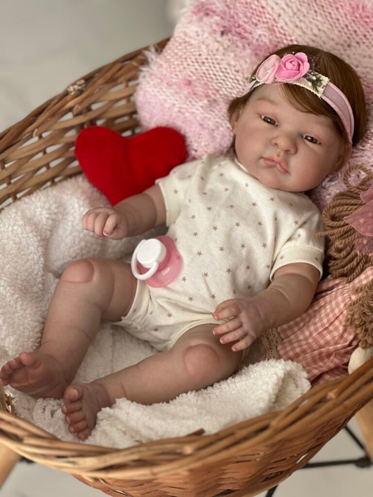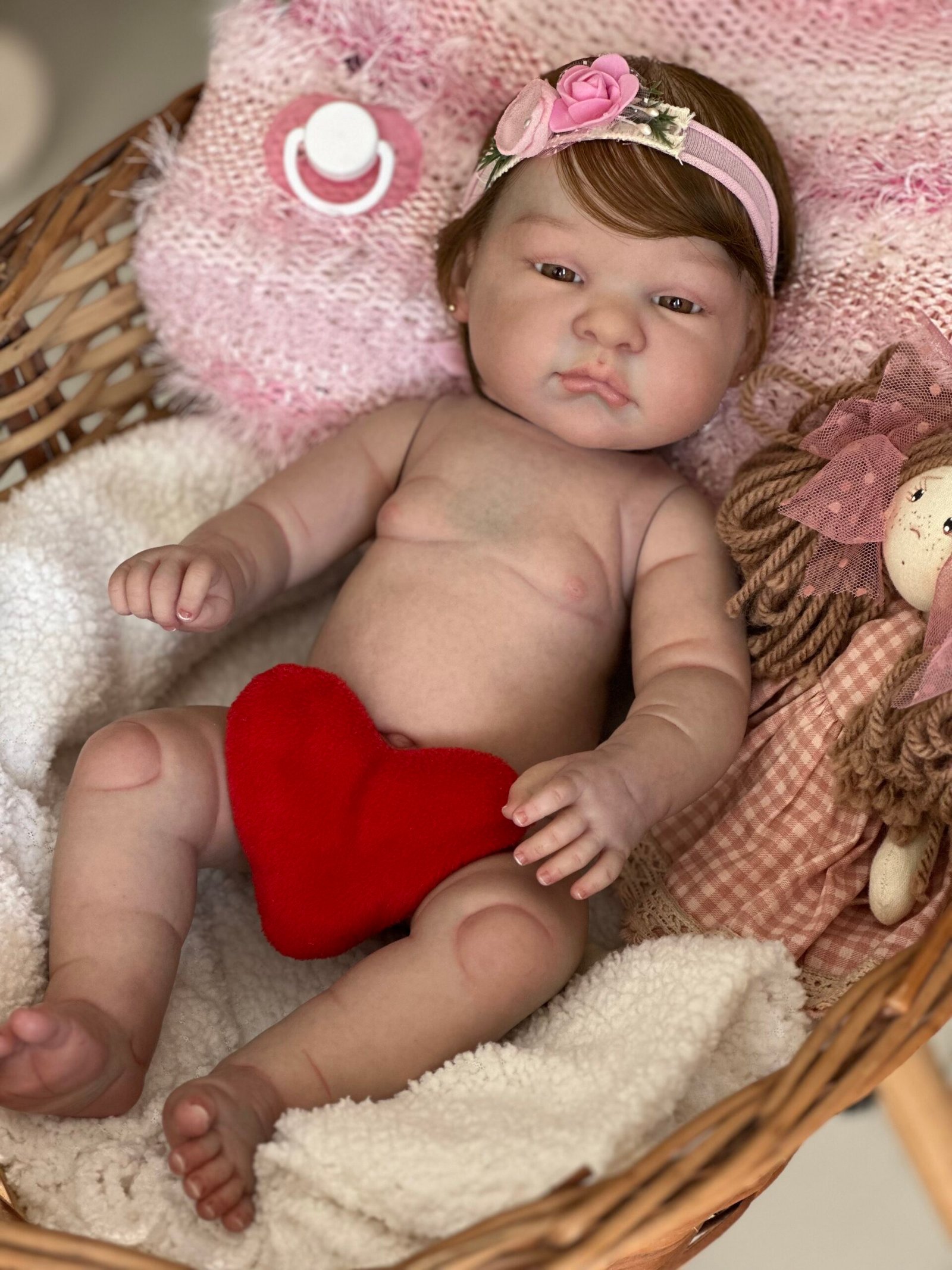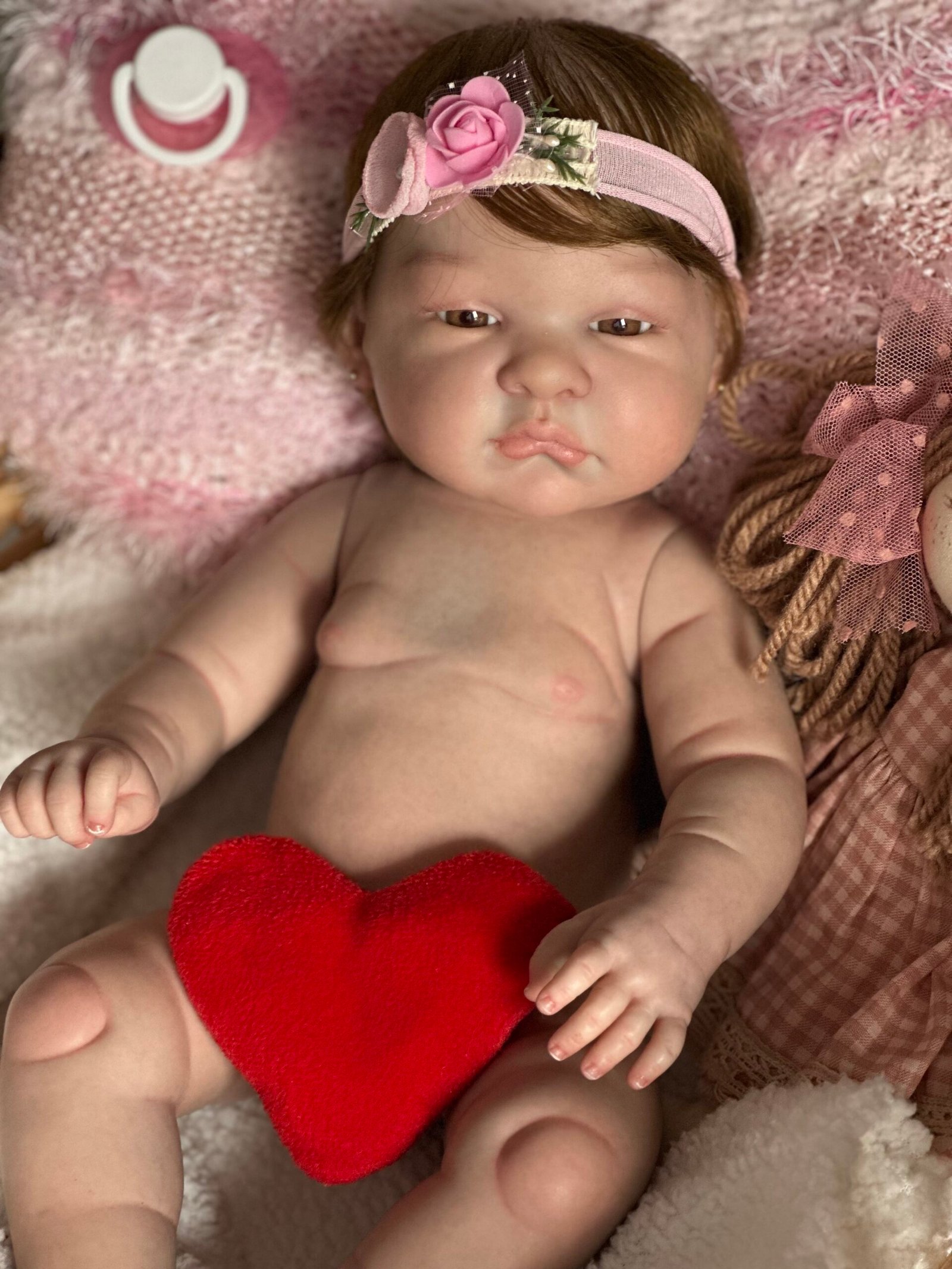 Boneca Reborn de corpinho inteiro em VINIL. Cabelos implantados fio por fio com fibra beautex.
