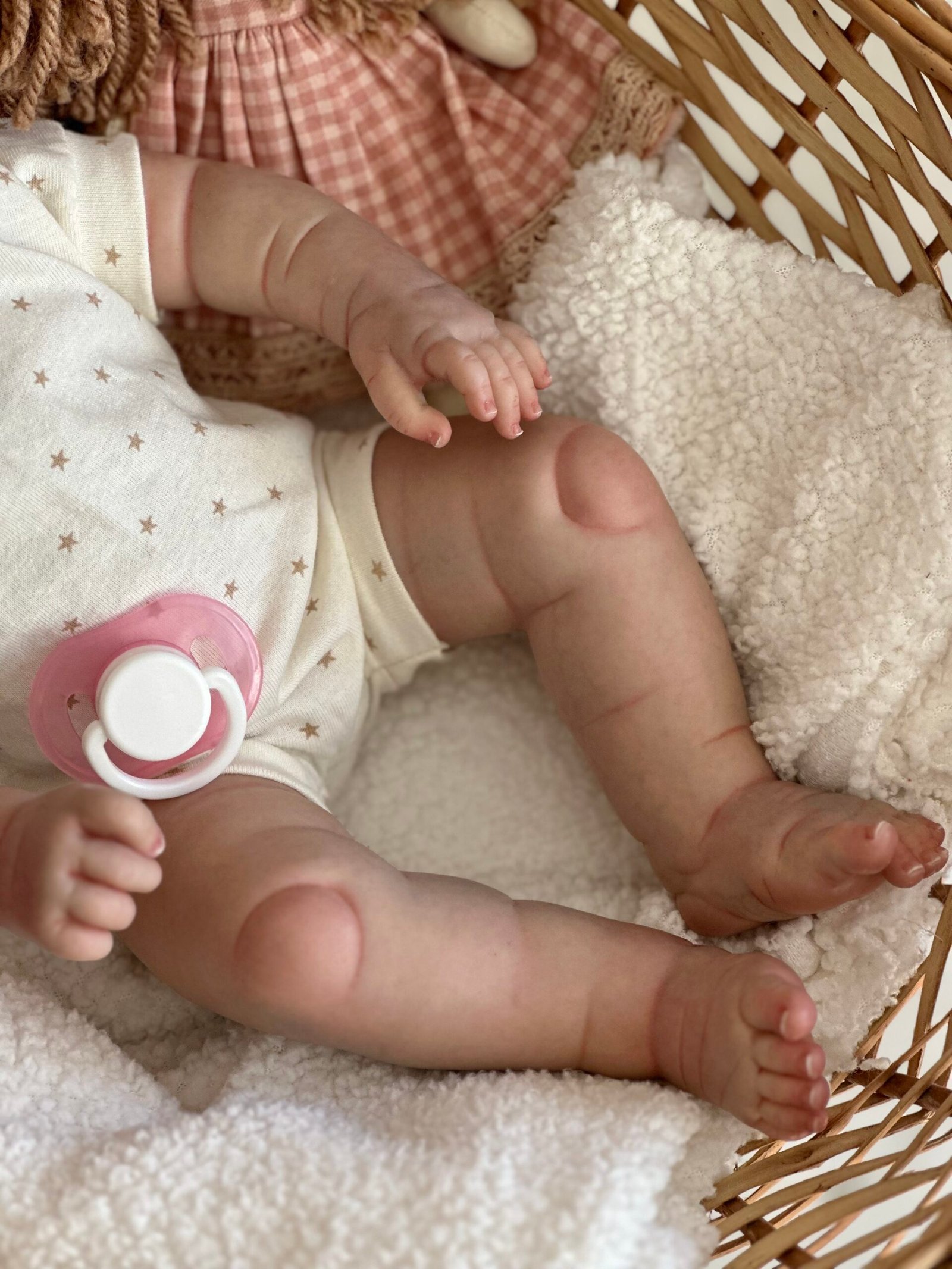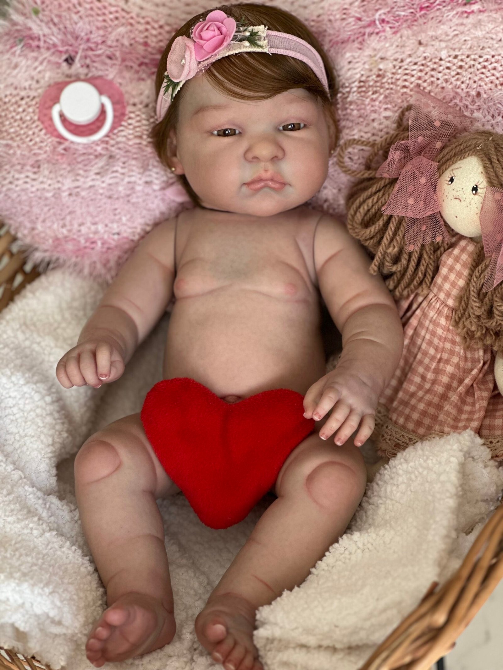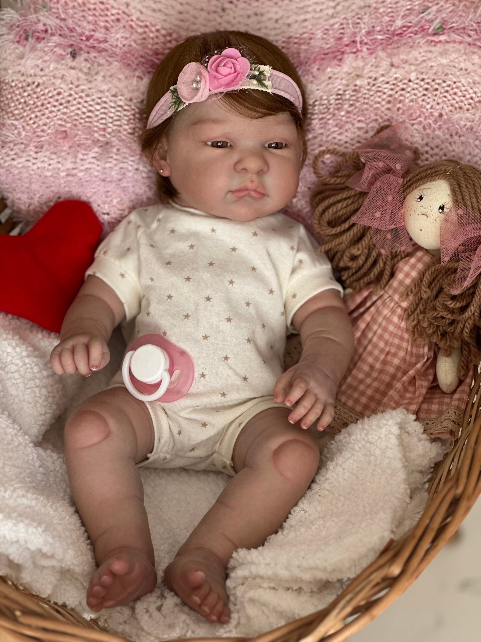 Boneca Reborn de corpinho inteiro em VINIL. Cabelos implantados fio por fio com fibra beautex.