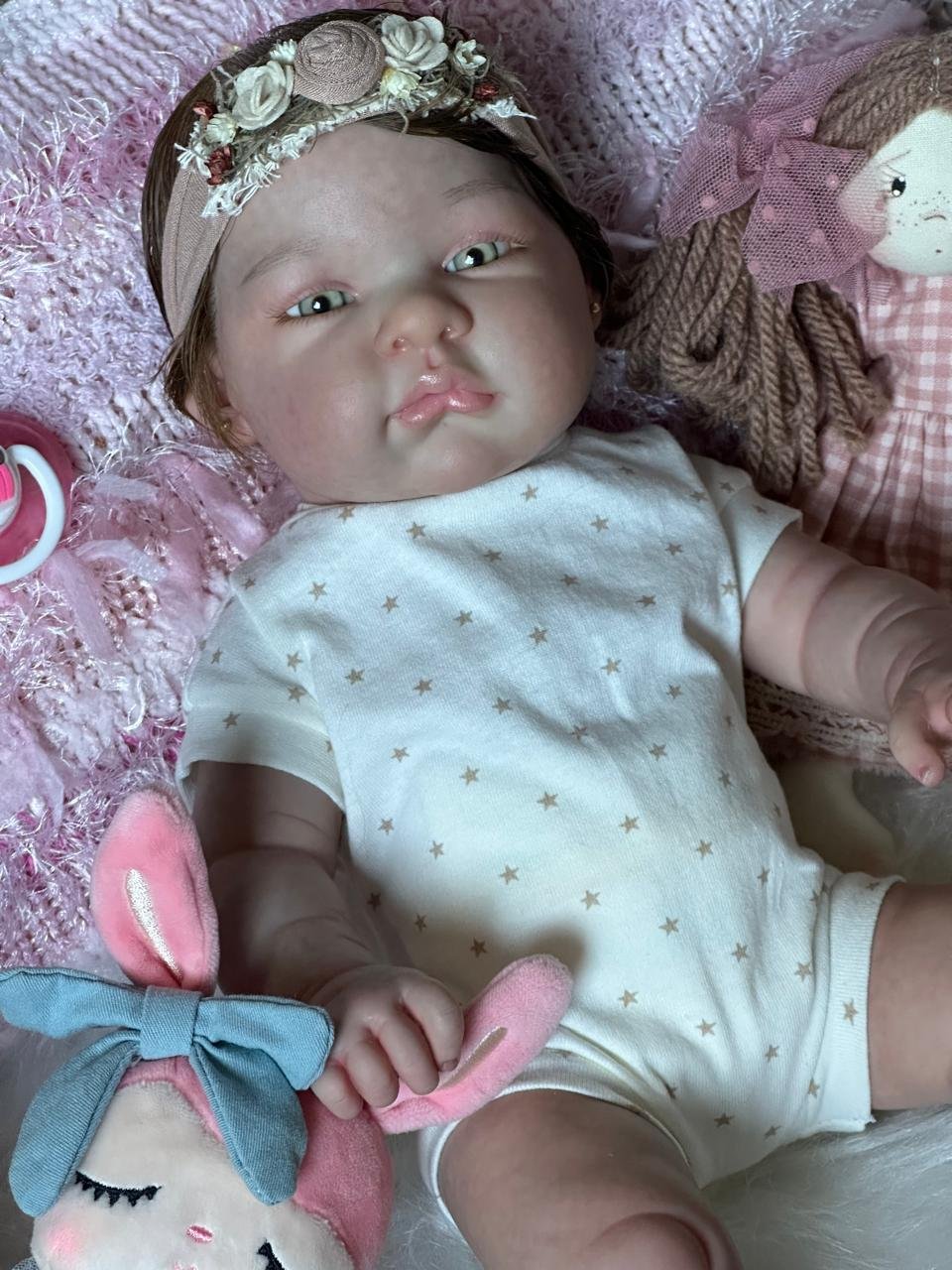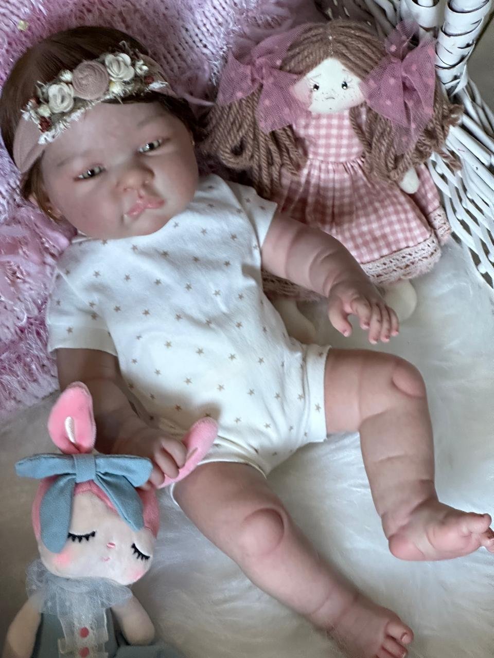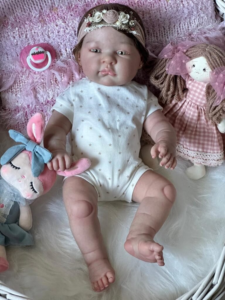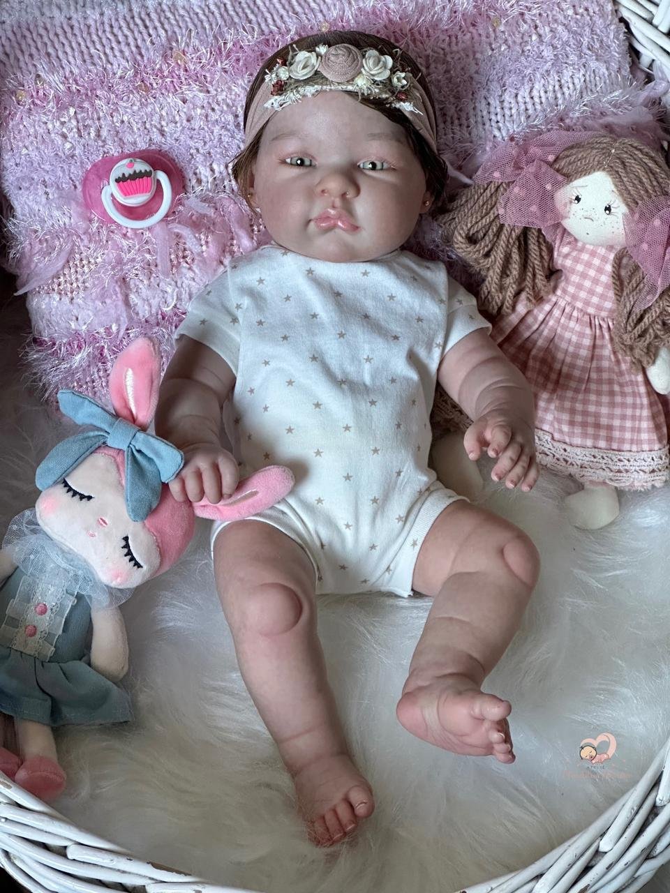 Boneca Reborn de corpinho inteiro em VINIL. Cabelos implantados fio por fio com fibra beautex.