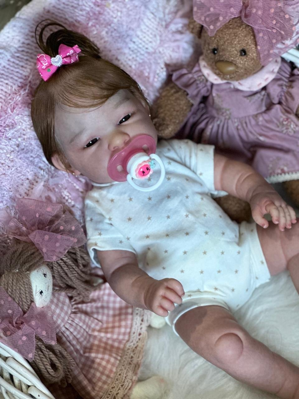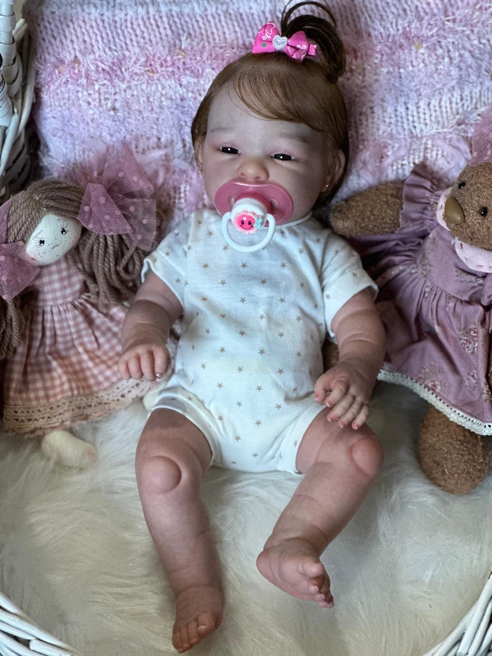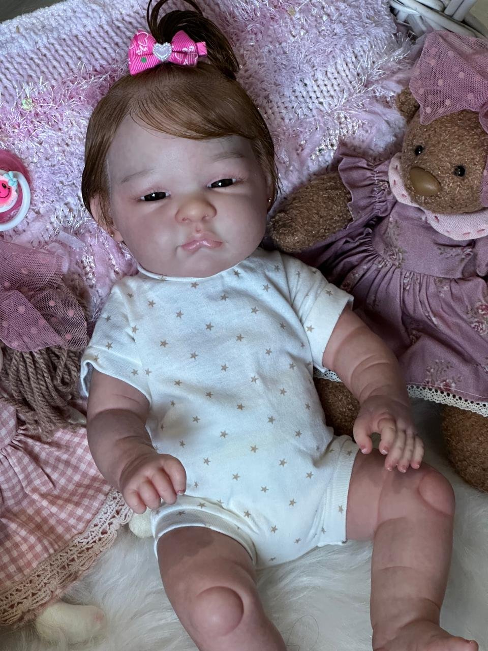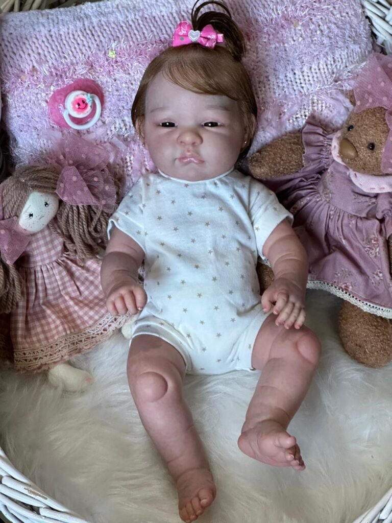 Boneca Reborn de corpinho inteiro em VINIL. Cabelos implantados fio por fio com fibra beautex.
